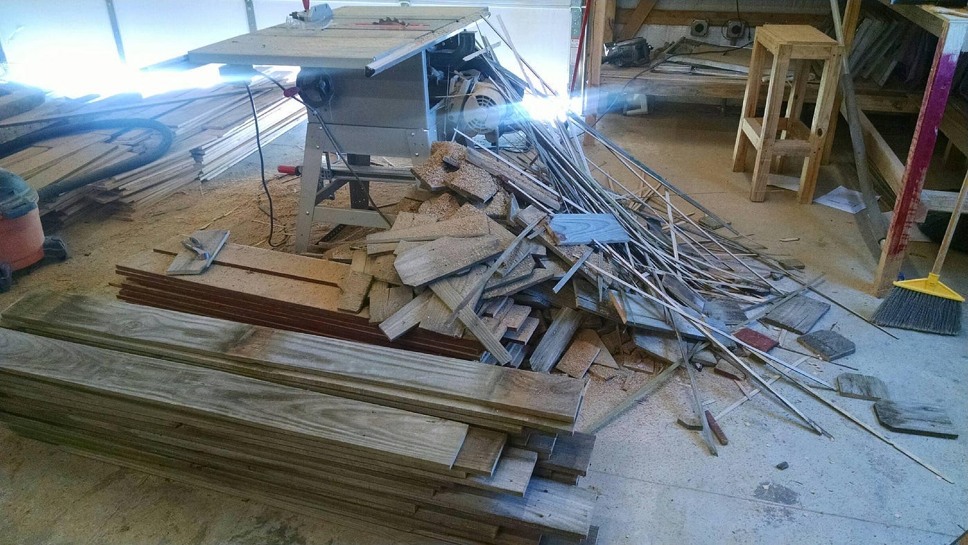 I’ve had a real learning curve to figure out the stove management. In cold weather, it takes about two fireboxes full of wood to heat the sauna. In warm weather, it takes just a smidge more than one load. All of the unusable scraps I’ve collected over four months make-up my firewood pile of about two cords. I will have another cord’s worth after I finish some other reclaimed wood projects.